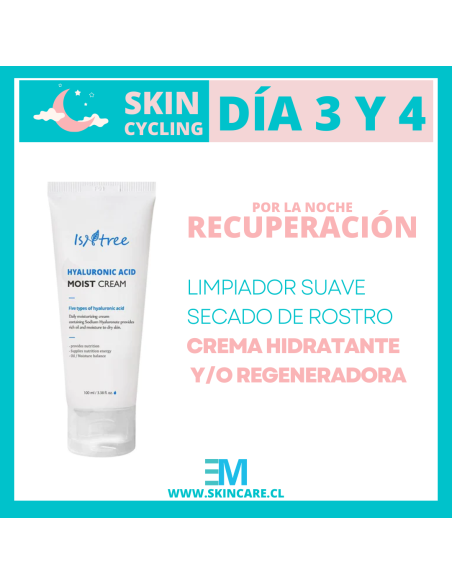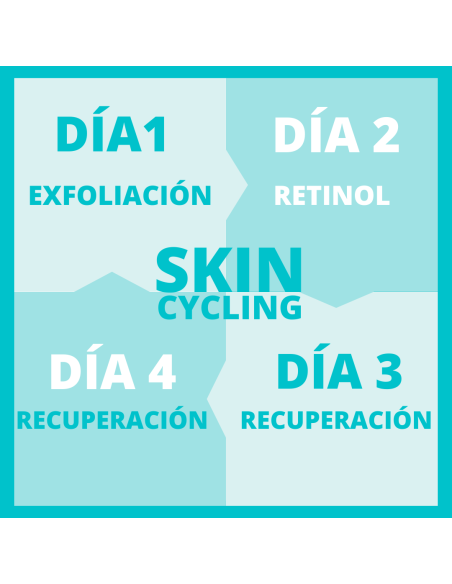 Está rutina consta de 4 días en donde utilizas distintos productos en tu rutina de noche, esto le da la posibilidad a tu piel de recuperarse y no sobre exponerla a distintos activos irritantes.