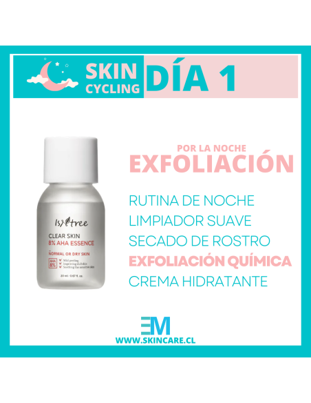 CLEAR SKIN 8% AHA ESSENCE MINI TALLA 20ml : EXFOLIANTE DE ÁCIDO GLICÓLICO, ÁCIDO LÁCTICO Y HIALURONICO.